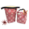 The Roll-Up has a flat bottom, a side release buckle, and is lined with our waterproof laminated cotton. The bottom is a 6"x 6" square, unrolled it stands 15" tall and 13" across the top.