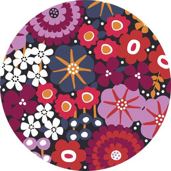 JUANITA is our interpretation of mod art floral splendor in reds. If you love reds and purples, this is your colorway. We infused it with love and joy.